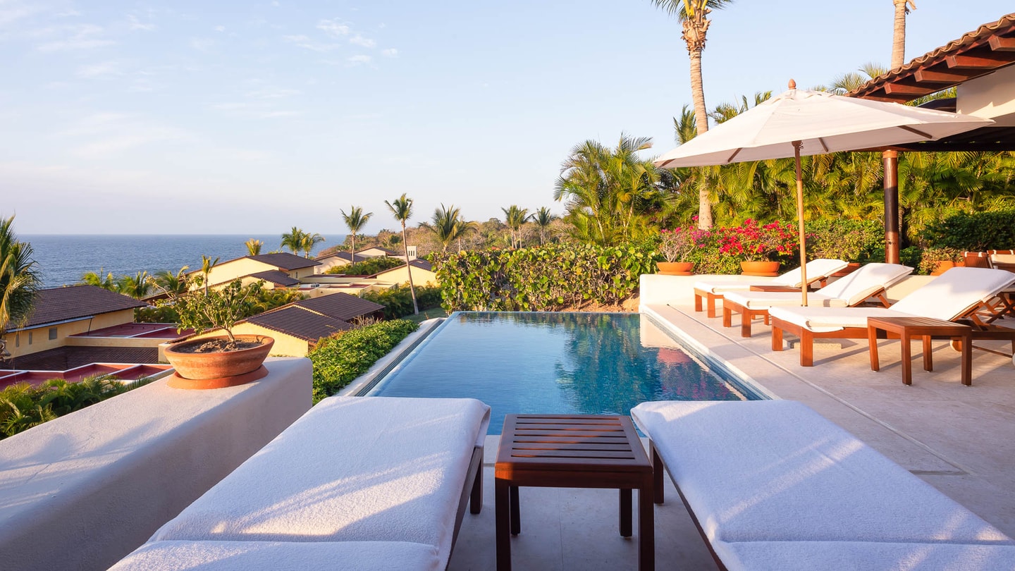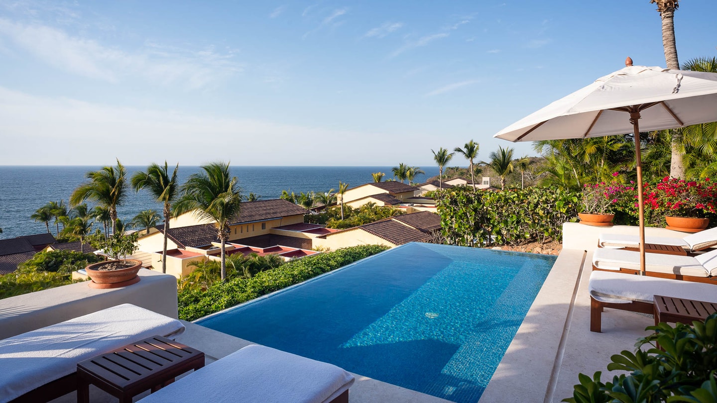 Only a five-minute walk from the resort, these beautifully-landscaped homes were constructed to offer spectacular views of the Pacific Ocean and the nearby Marieta Islands. Each magnificently crafted, four and five-bedroom property has its own private infinity plunge pool, Jacuzzi, gourmet kitchen, outdoor grill, and spacious indoor/outdoor living spaces.