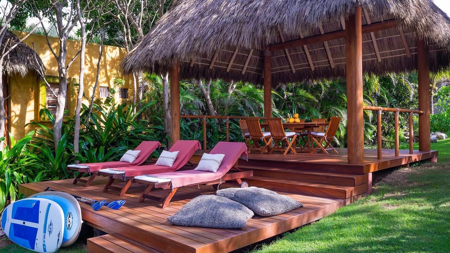 In addition to Punta Mita’s beach clubs, including the Kupuri Beach Club nearby, Kupuri villas like this one can access a private area of beach which has a cabana and lounge chairs for the exclusive use of Kupuri owners and guests. While no services are provided here, it is great for picnics.