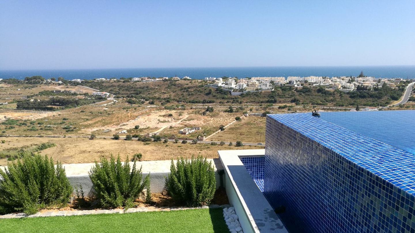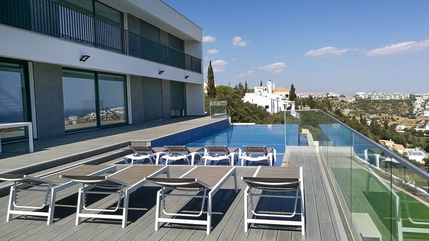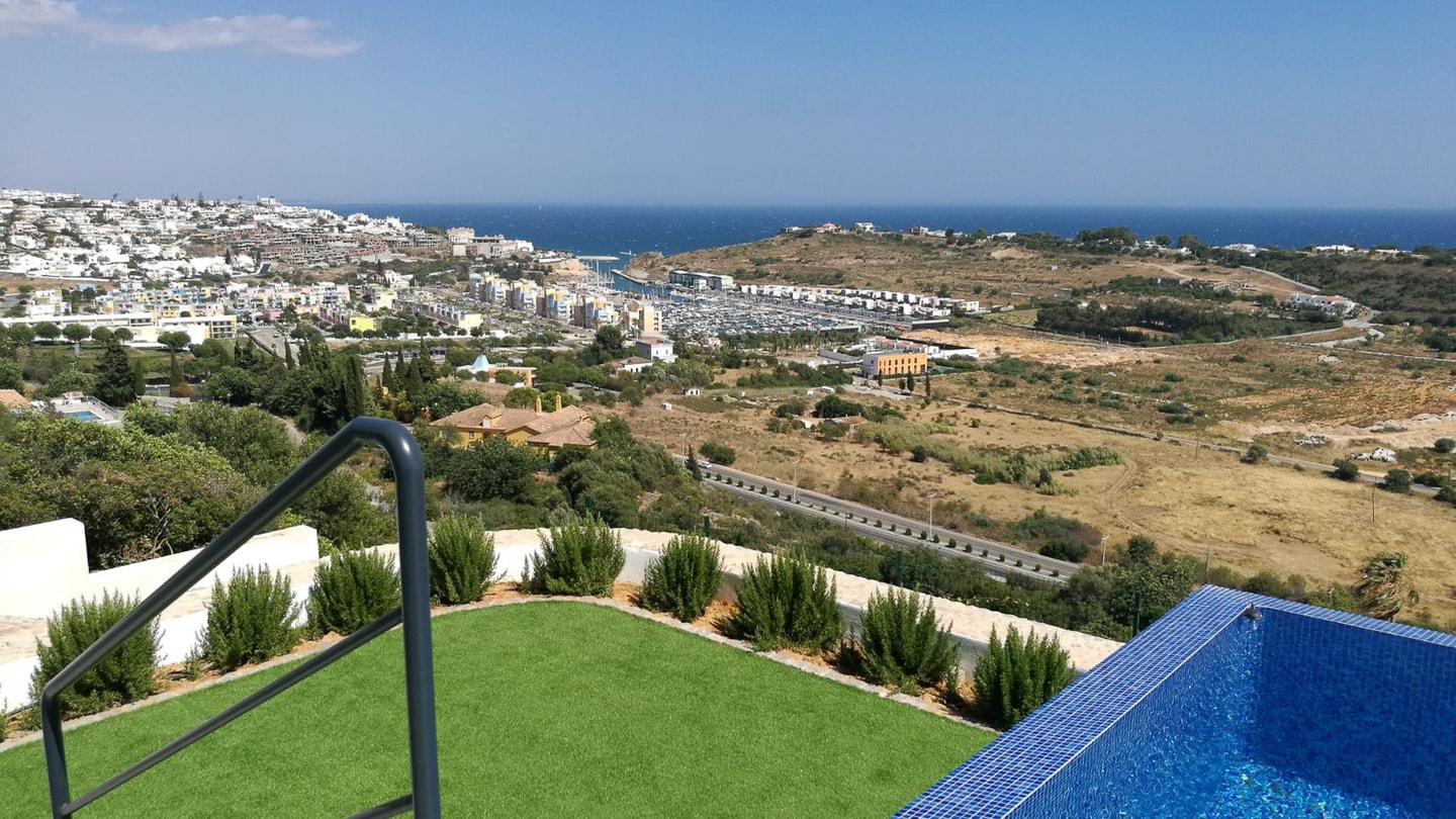Algarve villa in stunning location with sleek and dramatic views of Albufeira Marina in the distance with swimming pool and games room.