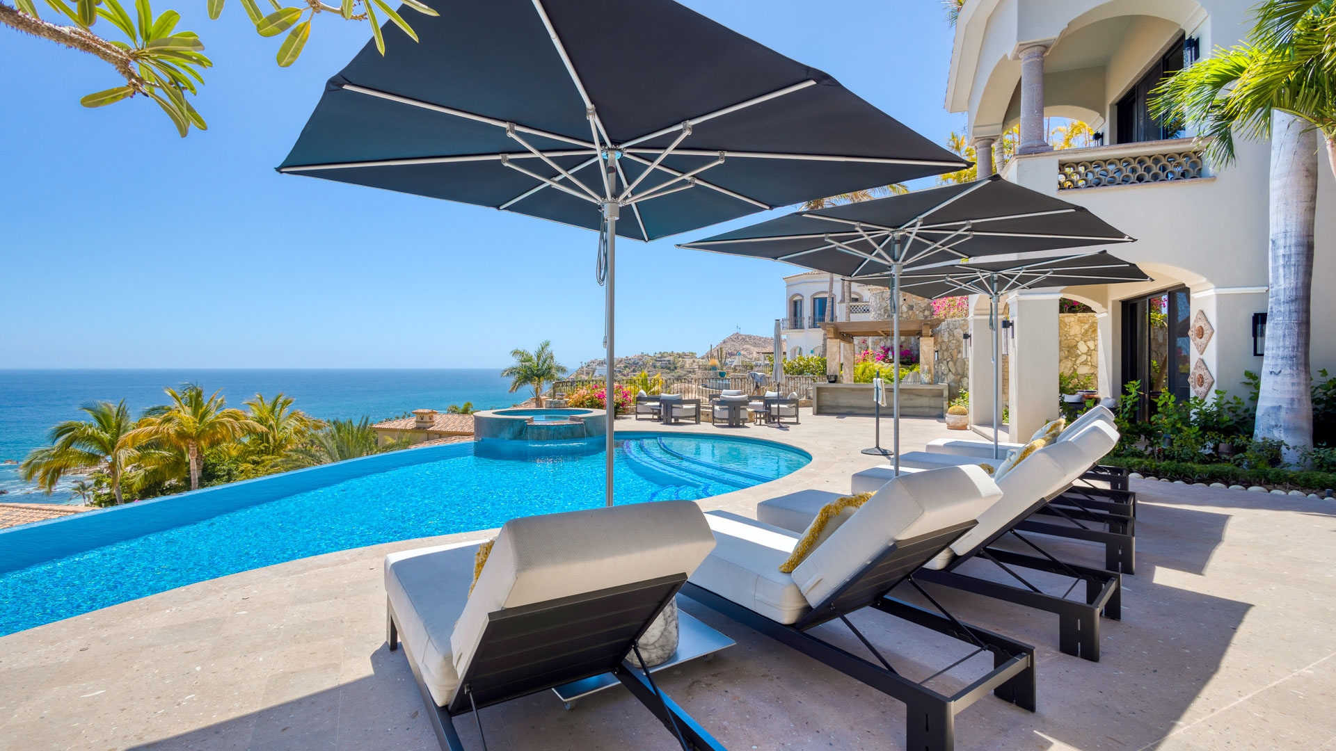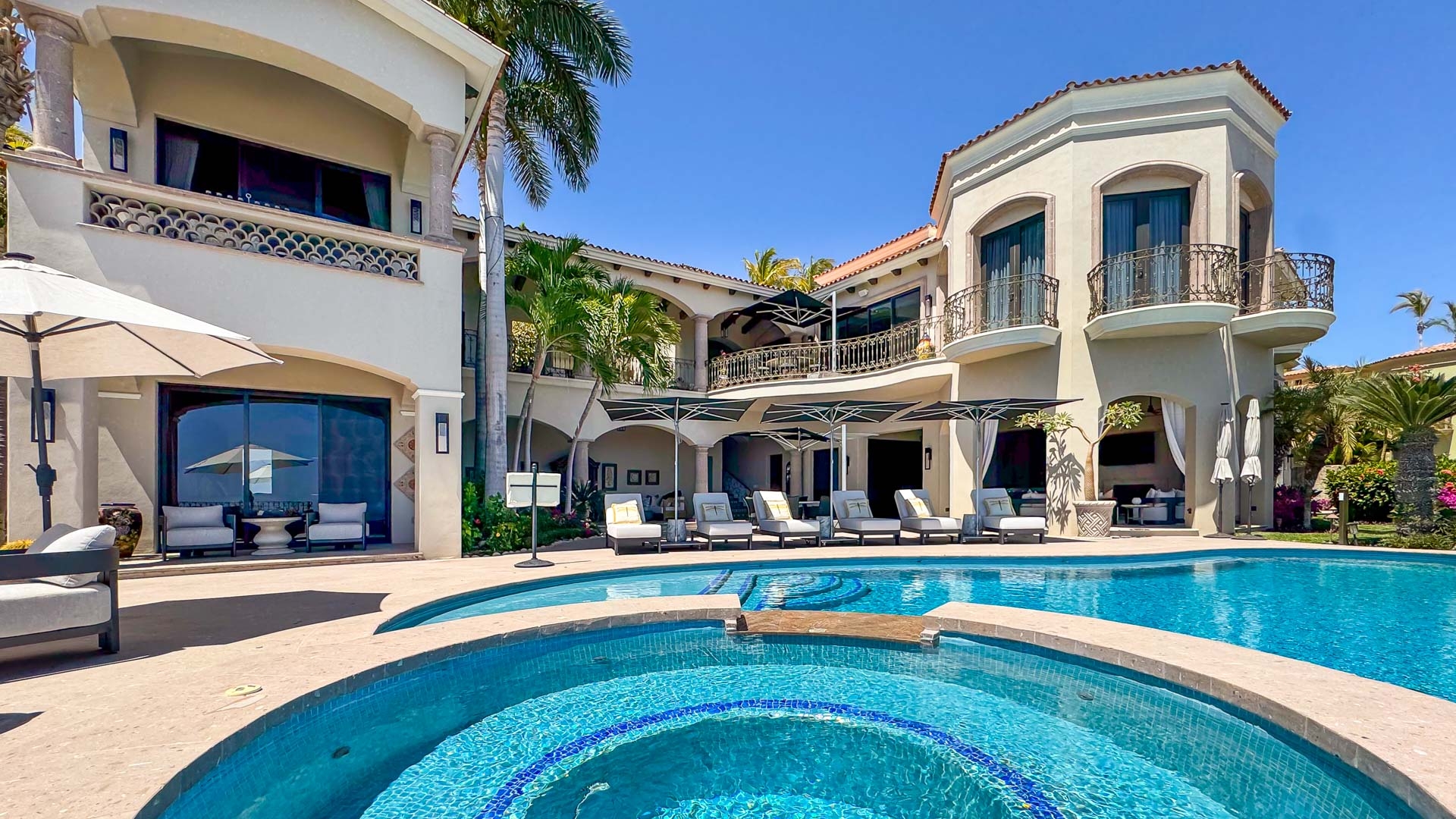 Ocean-view Cabo villa for rent with Mediterranean touches on two floors. Step back in time and image you are royalty.