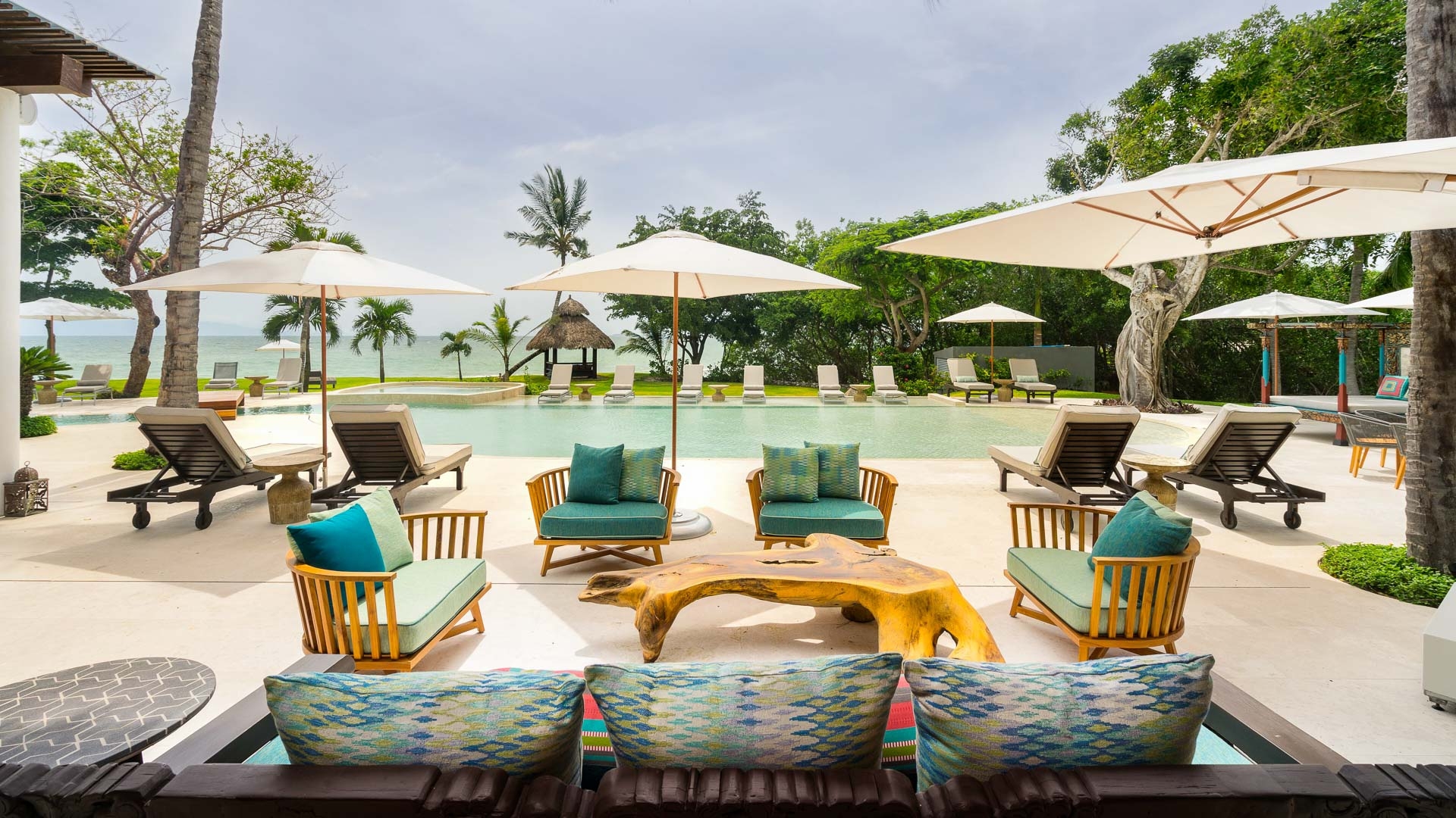 Featuring traditional, Mexican décor and details throughout the Punta Mita villa and grounds, this tropical paradise makes it easy to forget the stress of daily life. Rustically finished walls meet dark wooden furnishings and rich fabrics to give an air of opulence and comfort that is hard to beat.