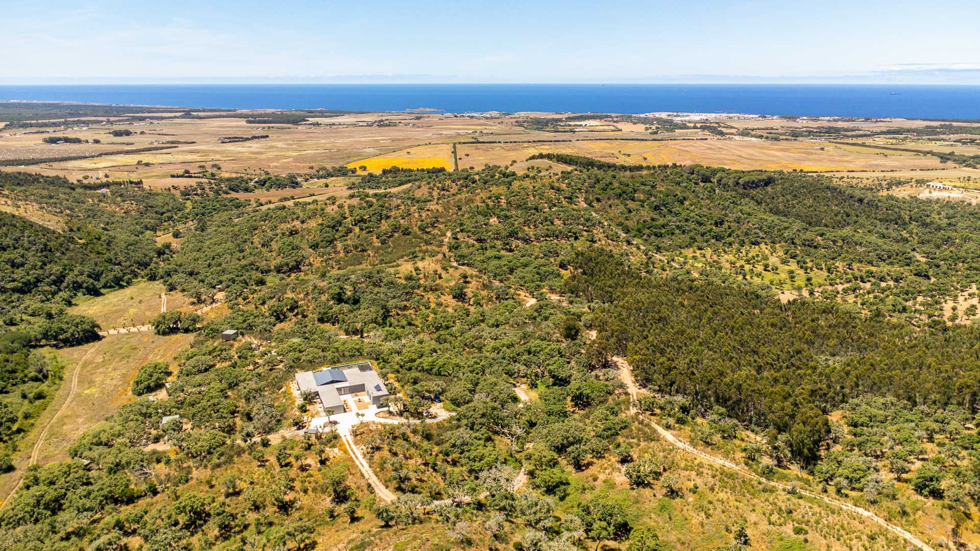 Set within the vast expanse of Alentejo Natural Park, this sprawling estate offers a spectacular setting with uninterrupted views extending to the ocean. The pristine private swimming pool takes center stage, promising endless hours of fun or serene sun worship.