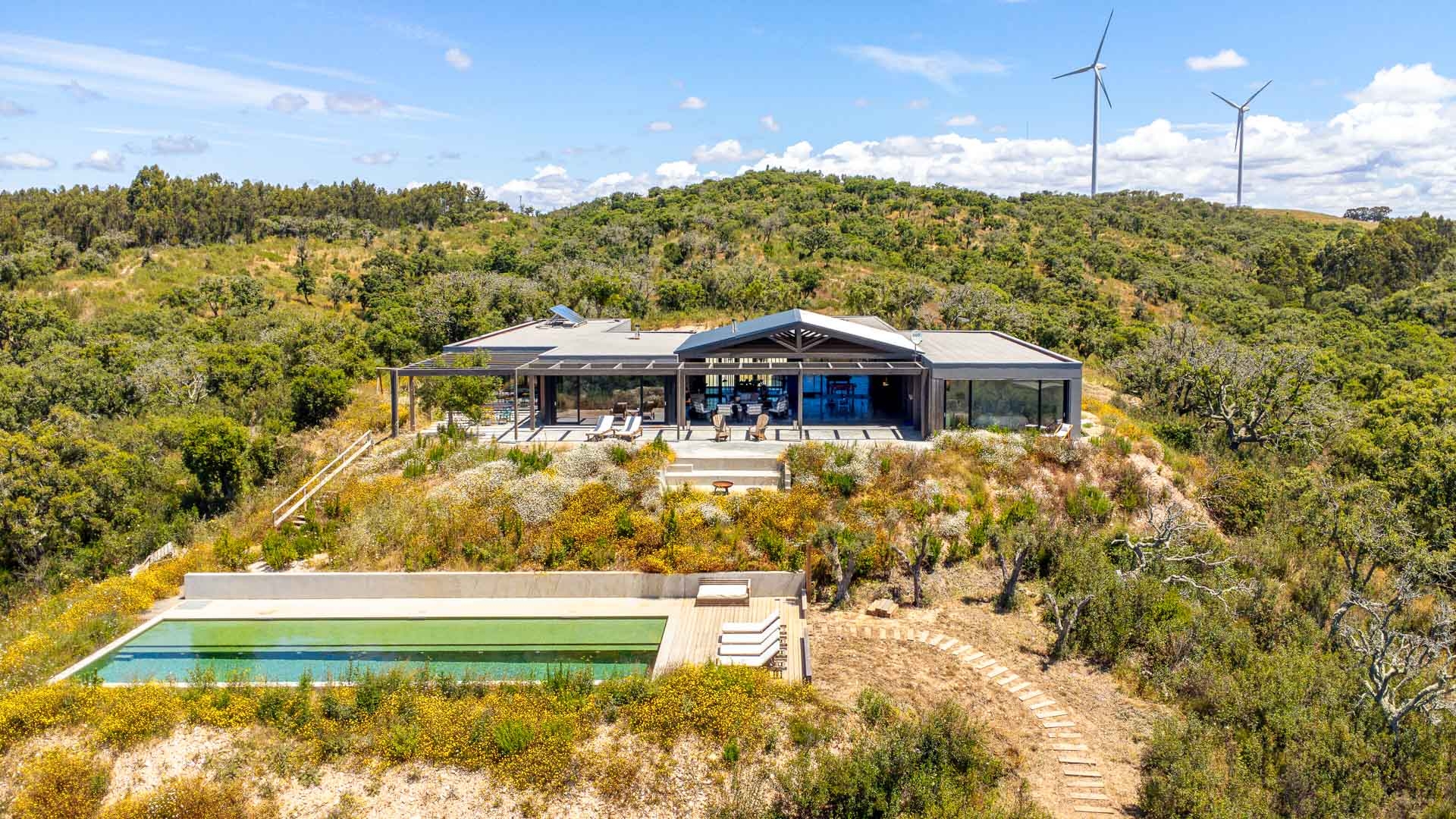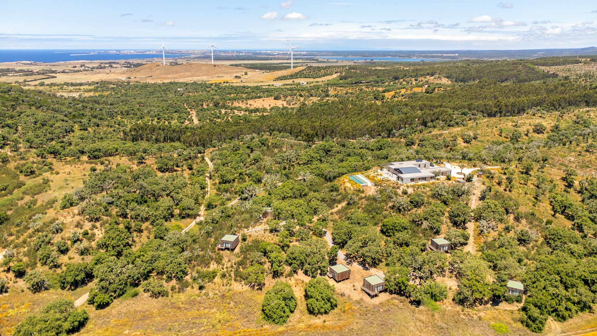 This incredible property is located in the unique Alentejo region, right near the charming coastal town of Porto Covo, and a scenic drive from both Melides and Comporta. It lies in the northern part of the Fisherman’s Trail of Rota Vicentina, often considered the most outstanding part of the route known for its spectacular coastal scenery.