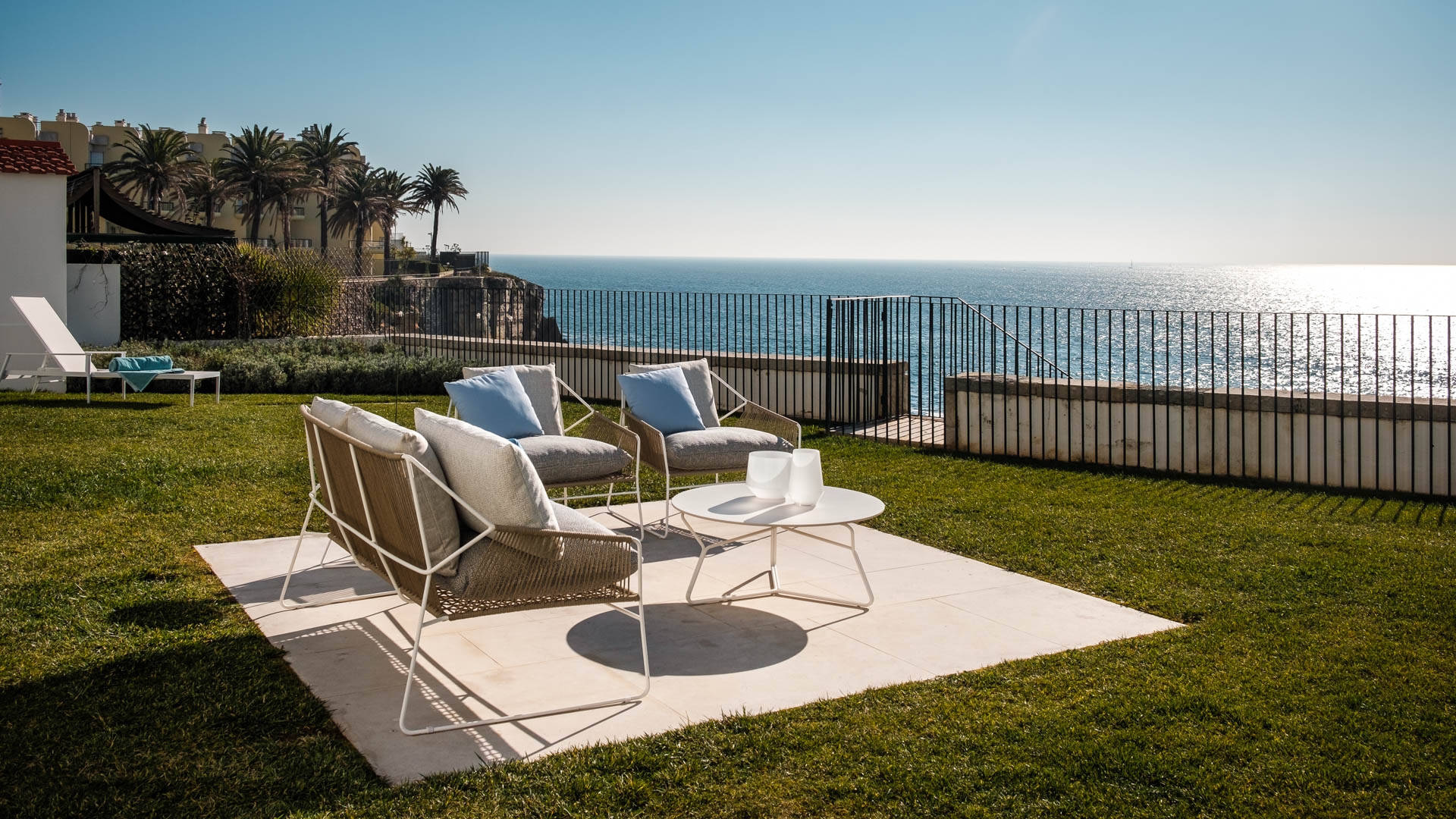 Located in the prestigious coastal town of Estoril, just minutes from Cascais and a short drive from Lisbon, this oceanfront villa offers direct beach access and stunning sea views. Estoril is famed for its world-class casino, elegant promenade, and sandy beaches. Guests can enjoy water sports, dining at oceanfront restaurants, and exploring the vibrant old town of Cascais. For golf enthusiasts, the renowned Oitavos Dunes Golf Course—ranked among the best in Europe—is just a short drive away, offering a premier golfing experience with breathtaking Atlantic views.